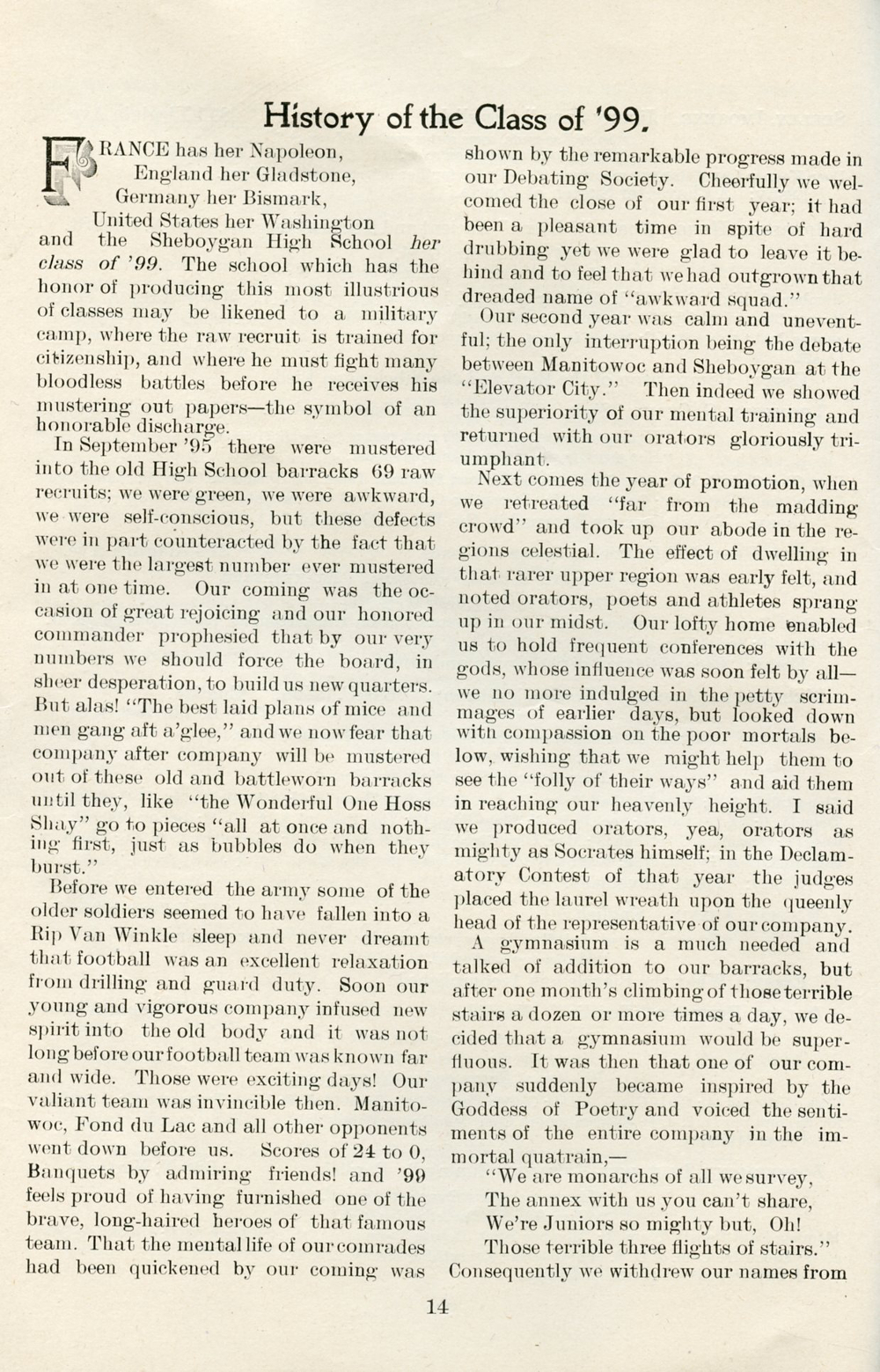 1899 Sheboygan High School, Page 14:
