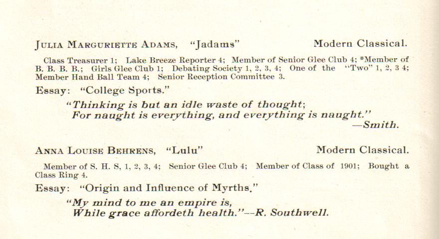 1901 Sheboygan High School: Julia Adams, Anna Behrens.