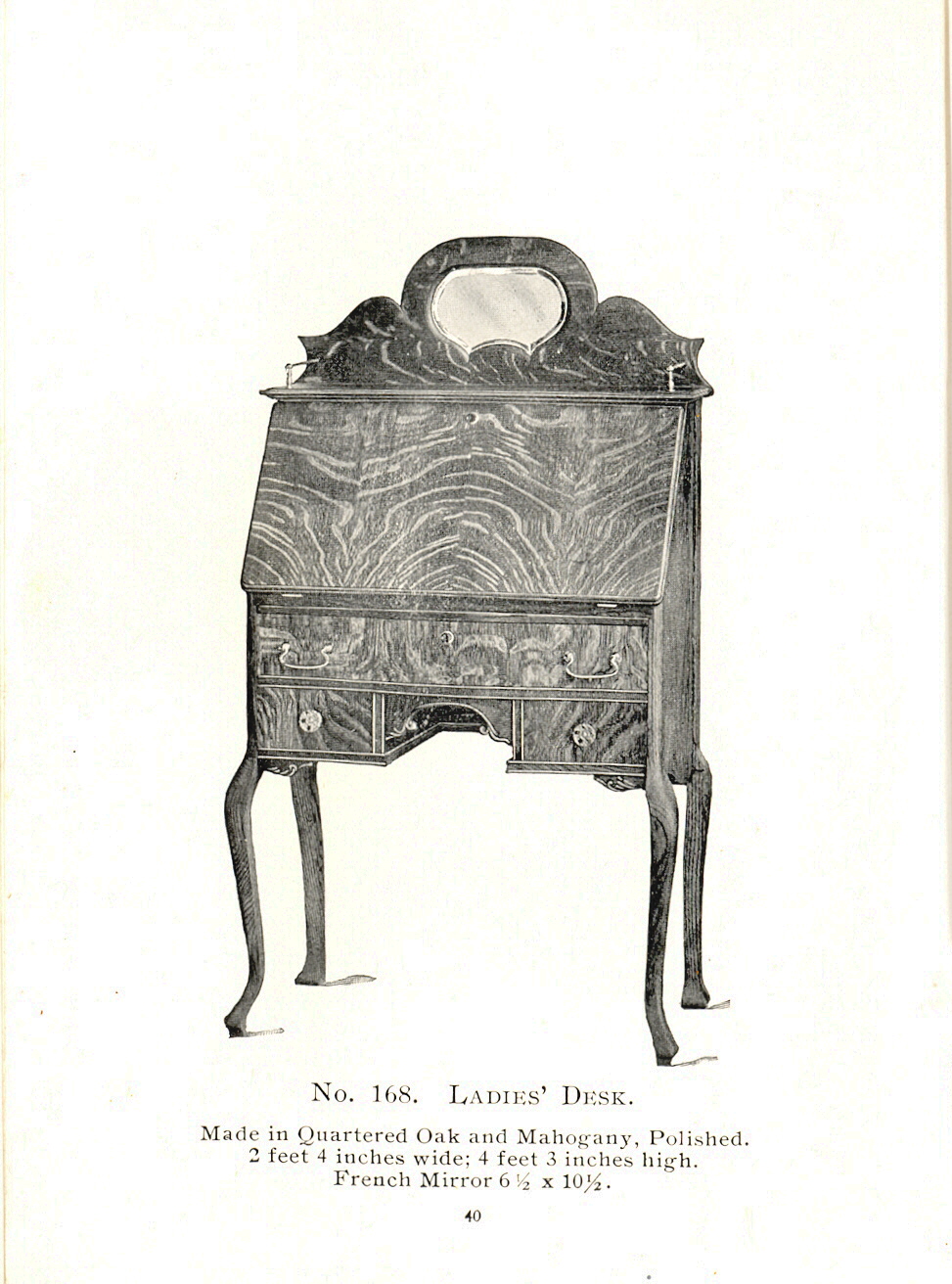 1904 Sheboygan Novelty Company Catalogue: Page 40, No. 168. Ladies' Desk.