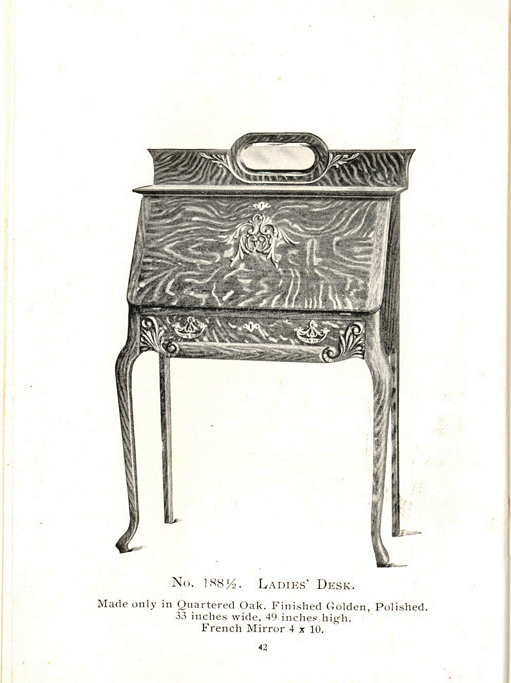 1904 Sheboygan Novelty Company Catalogue: Page 42, No. 188 1/2. Ladies' Desk.