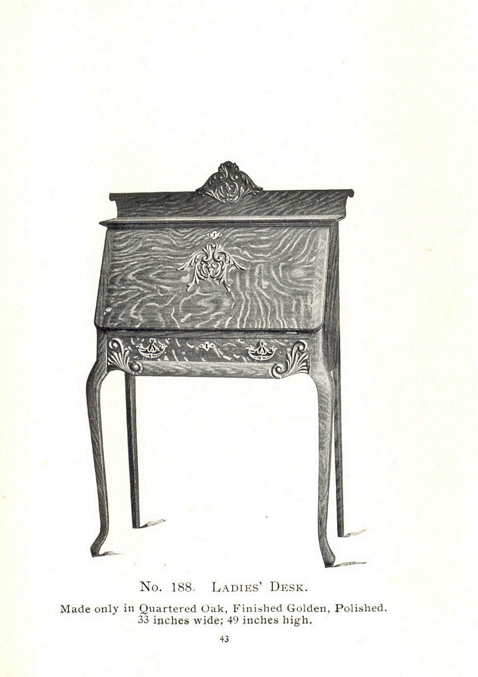 1904 Sheboygan Novelty Company Catalogue: Page 43, No. 188. Ladies' Desk.