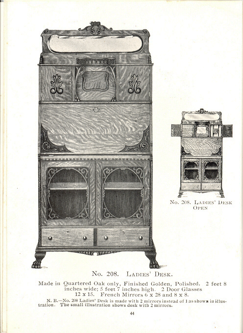 1904 Sheboygan Novelty Company Catalogue: Page 44, No. 208. Ladies' Desk.