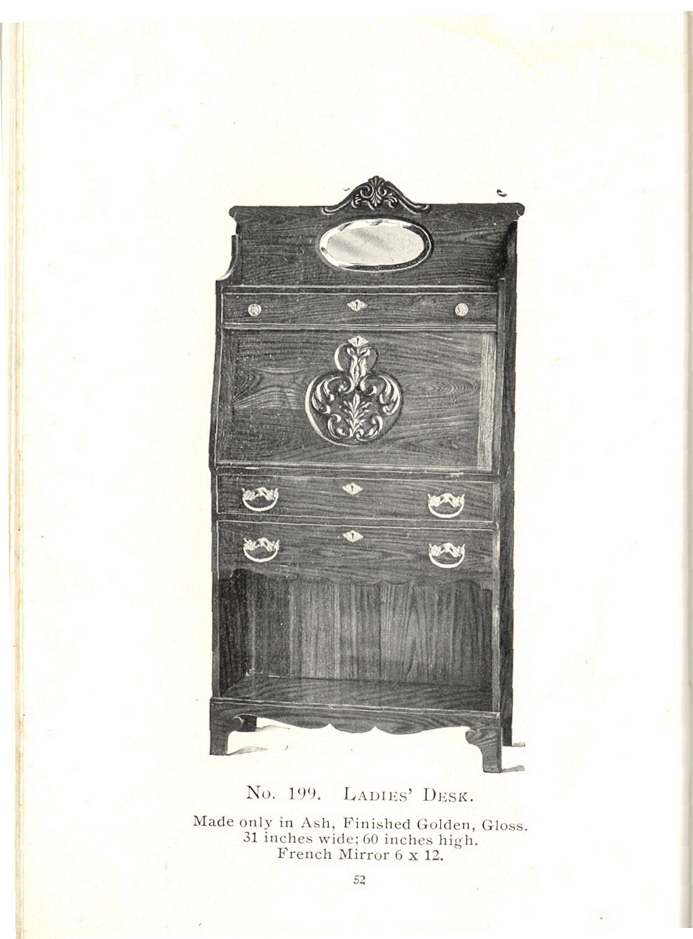 1904 Sheboygan Novelty Company Catalogue: Page 52, No. 199. Ladies' Desk.