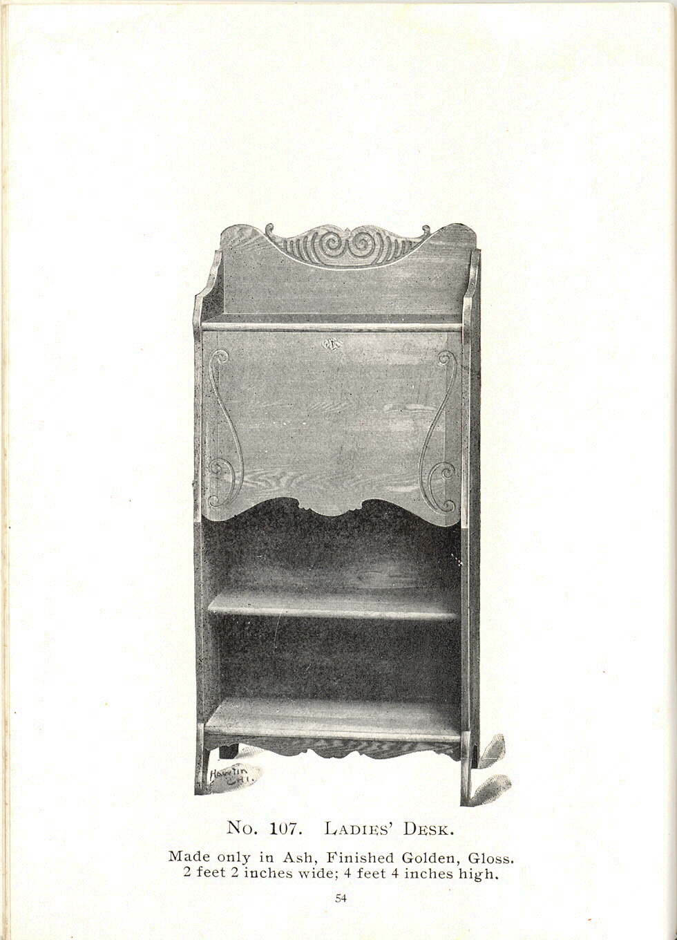 1904 Sheboygan Novelty Company Catalogue: Page 54, No. 107. Ladies' Desk.