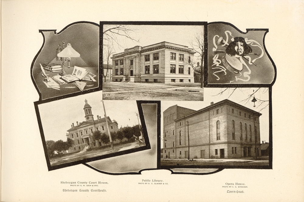 1905 Sheboygan County Souvenir Page 10: Sheboygan, County Court House, Public Library, Opera House