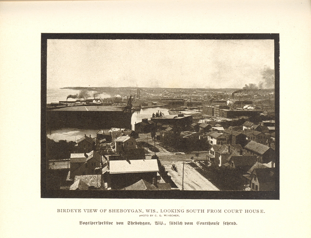 1905 Sheboygan County Souvenir Top of Page 18: Birdeye View of Sheboygan, Wis., Looking South From Court House