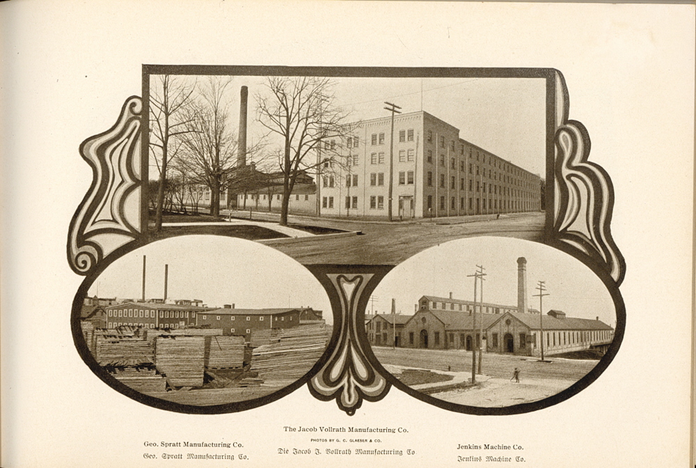 1905 Sheboygan County Souvenir Page 28: Geo. Spratt Manufacturing Co., the Jacob Vollrath Manufacturing Co., Jenkins Machine Co.