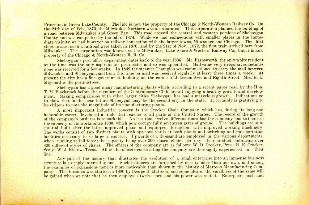 1905 Sheboygan County Souvenir Page 4: A Brief History of the Growth and Development of the City and County of Sheboygan