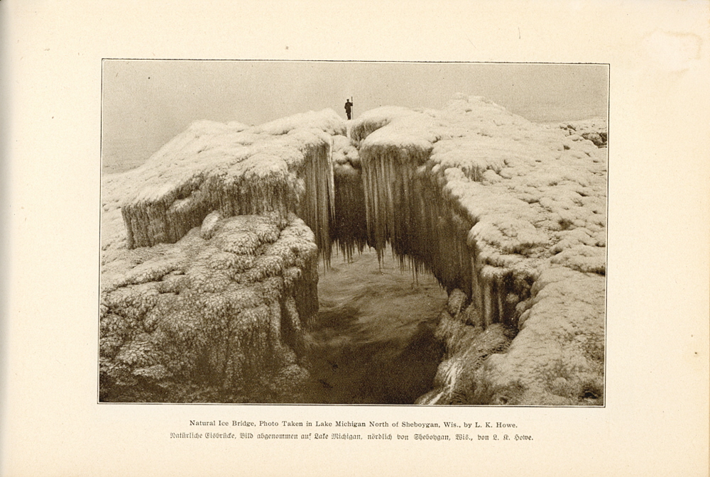 1905 Sheboygan County Souvenir Page 45: Natural Ice Bridge, Photo Taken in Lake Michigan North of Sheboygan, Wis. by L. K. Howe