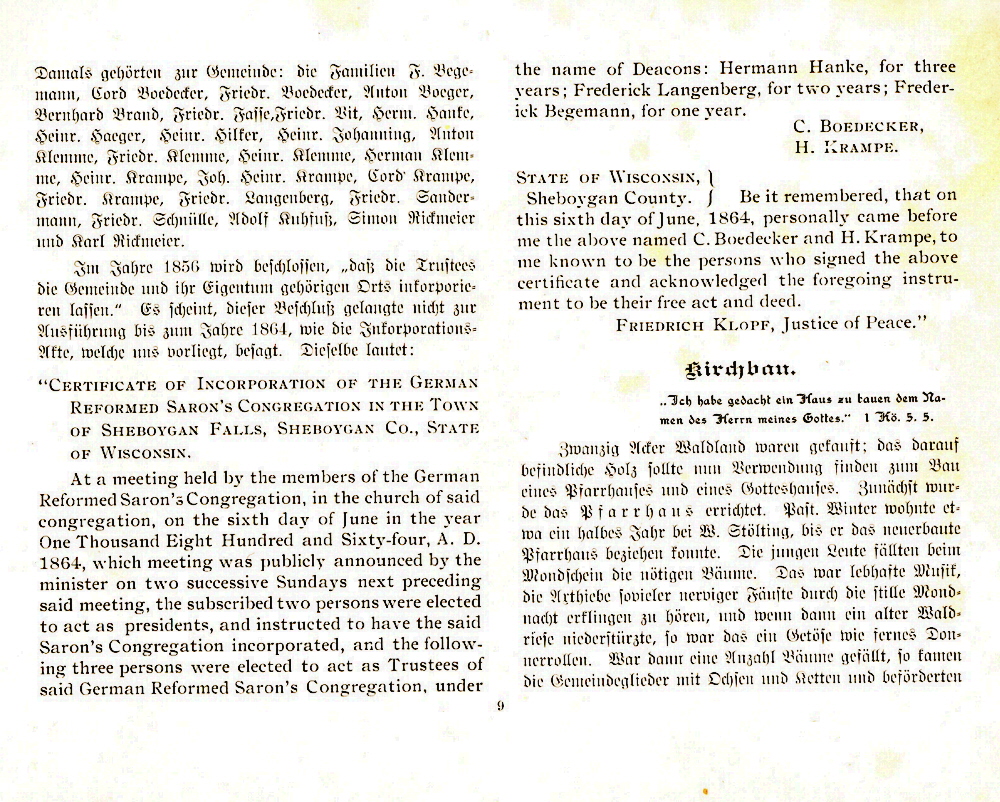 1915 Saron Evangelical and Reformed Church 60th Anniversary: Page 9.