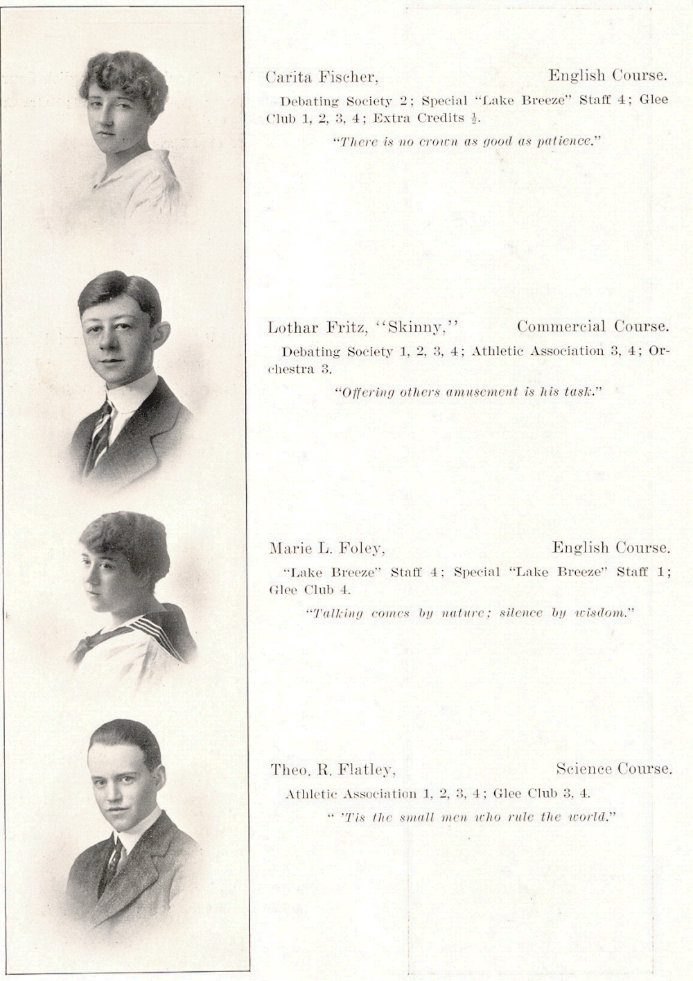 1916 Sheboygan High School, Page 12: Carita Fischer, Lothar Fritz, Marie L. Foley, Theo. R. Flatley.