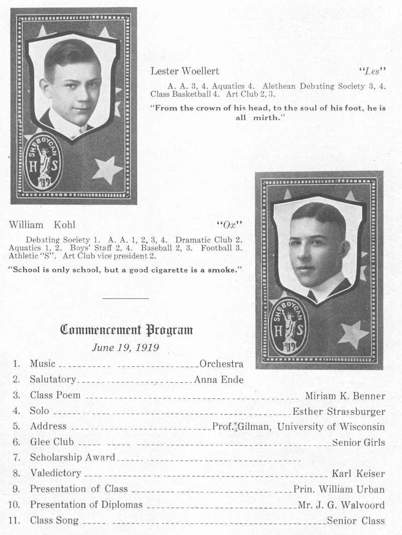 1919 Sheboygan High School, Page 21: Lester Woellert, William Kohl.