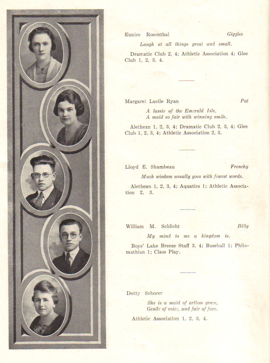 1920 Sheboygan High School, Page 24: Eunice Rosenthal, Margaret Ryan, Lloyd Shambeau, William Schlicht, Dotty Schorer.