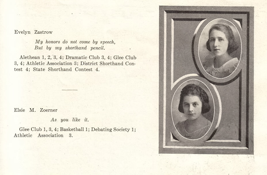 1920 Sheboygan High School, Page 29: Evelyn Zastrow, Elsie Zoerner.