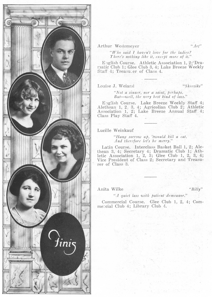 1923 Sheboygan High School, Page 47: Arthur Wedemeyer, Louise Weiand, Lucille Weinkauf, Anita Wilke.
