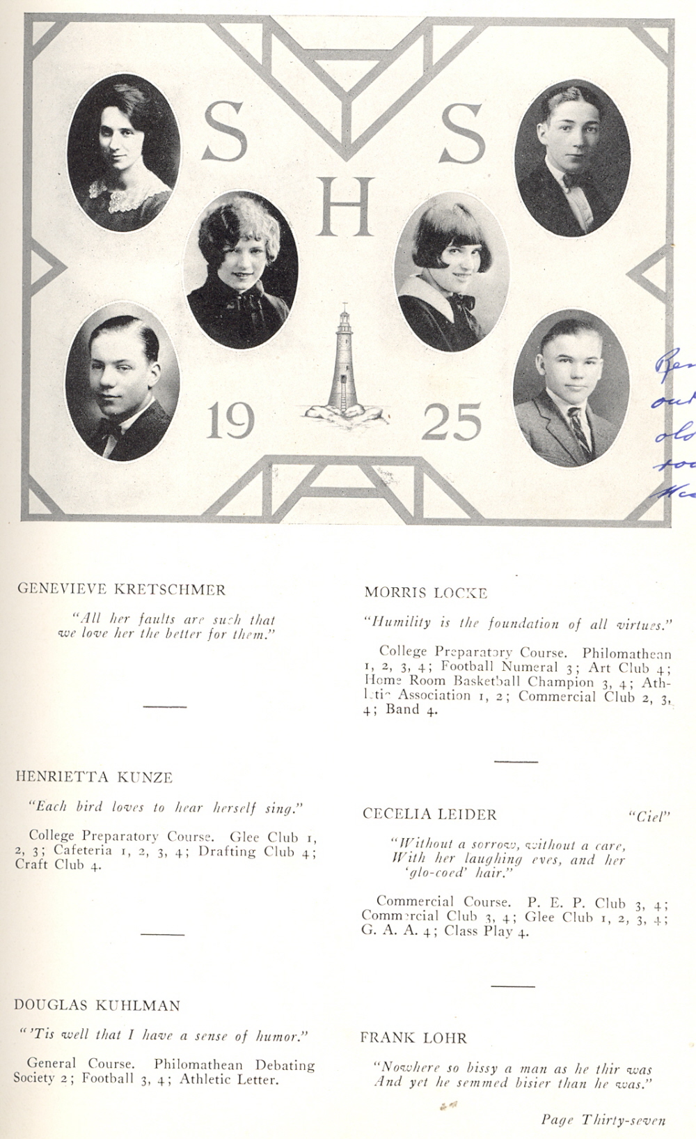 1925 Sheboygan High School, Page 37: Genevieve Kretschmer, Henrietta Kunze, Douglas Kuhlman, Morris Locke, Cecelia Leider, Frank Lohr.