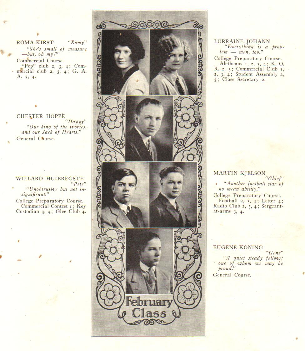 1926 Sheboygan High School, Page 27: Roma Kirst, Lorraine Johann, Chester Hoppe, Willard Huibregtse, Martin Kjelson, Eugene Koning.