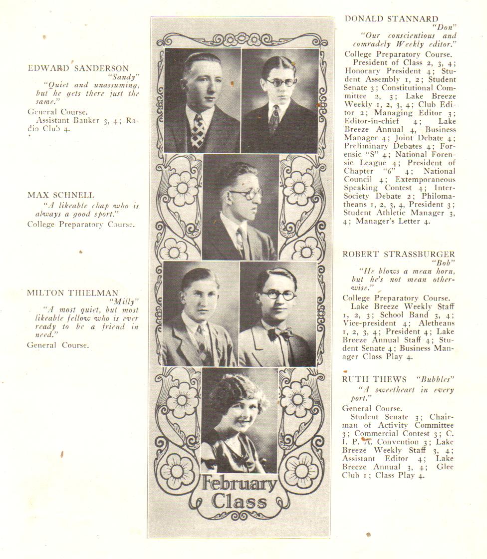 1926 Sheboygan High School, Page 31: Edward Sanderson, Donald Stannard, Max Schnell, Milton Thielman, Robert Strassburger, Ruth Thews.