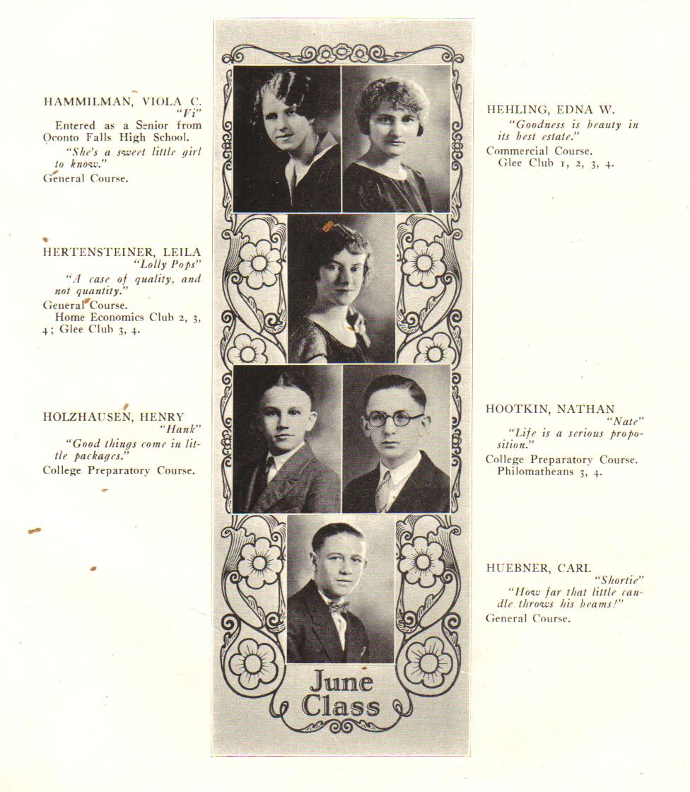 1926 Sheboygan High School, Page 43: Viola Hammilman, Edna Hehling, Leila Hertensteiner, Henry Holzhausen, Nathan Hootkin, Carl Huebner.