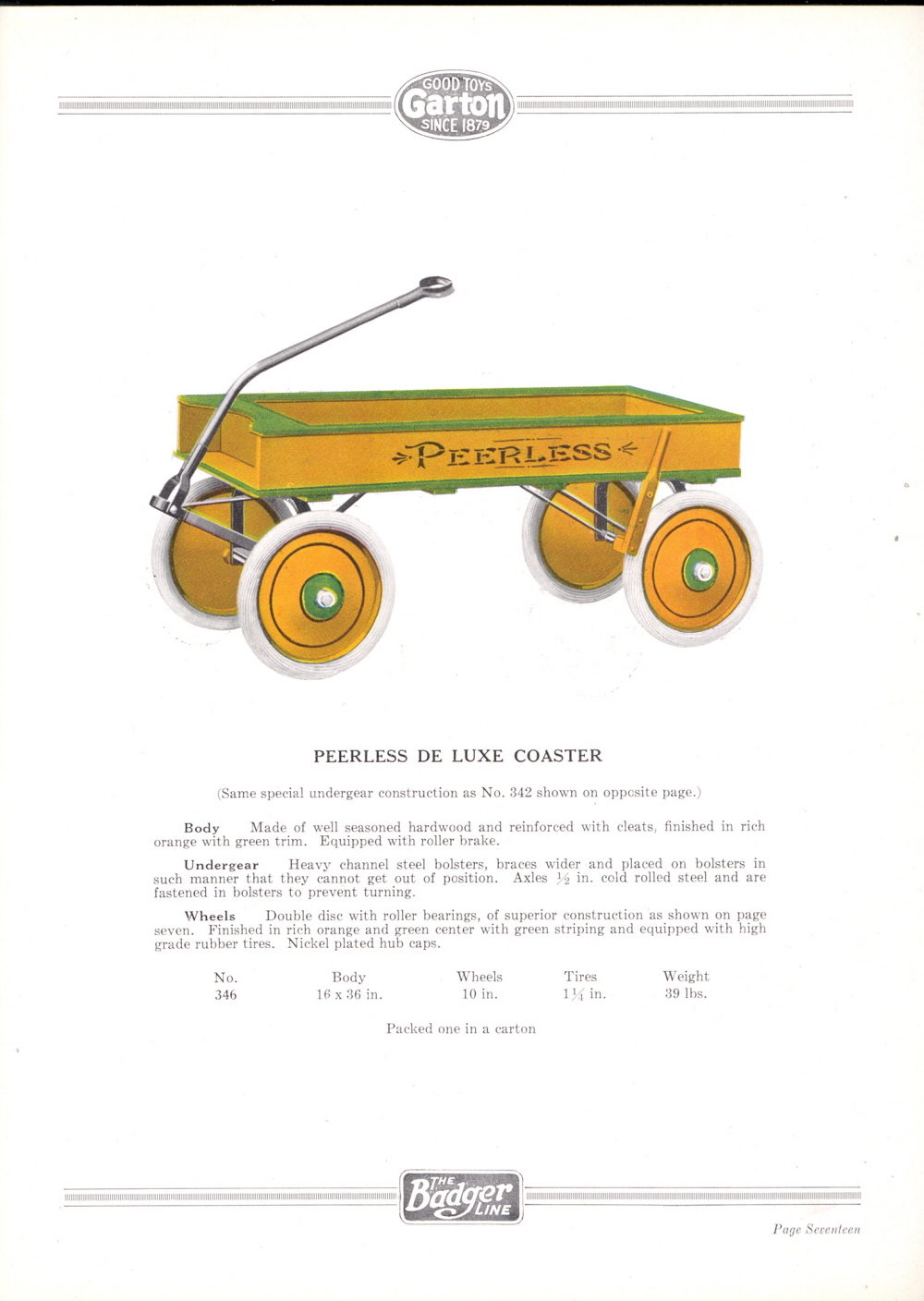 1927 Garton Toy Company Catalogue, Page 17: Peerless De Luxe Coaster.