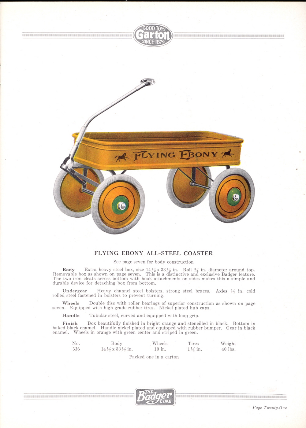 1927 Garton Toy Company Catalogue, Page 21: Flying Ebony All-Steel Coaster.