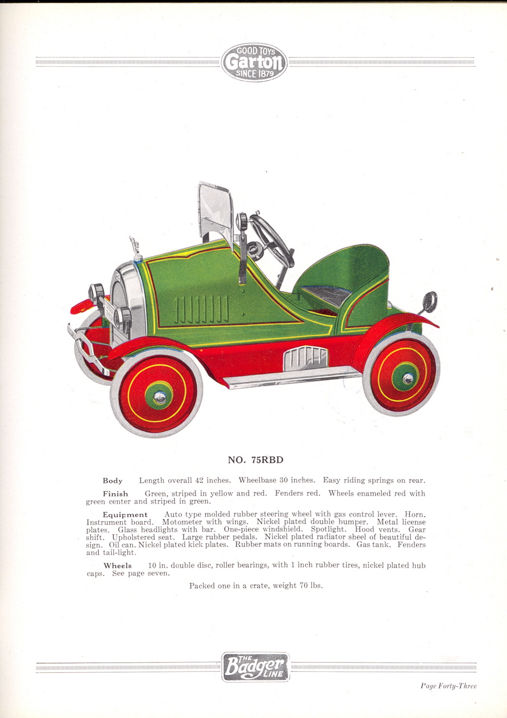 1927 Garton Toy Company Catalogue, Page 43: No. 75RBD.