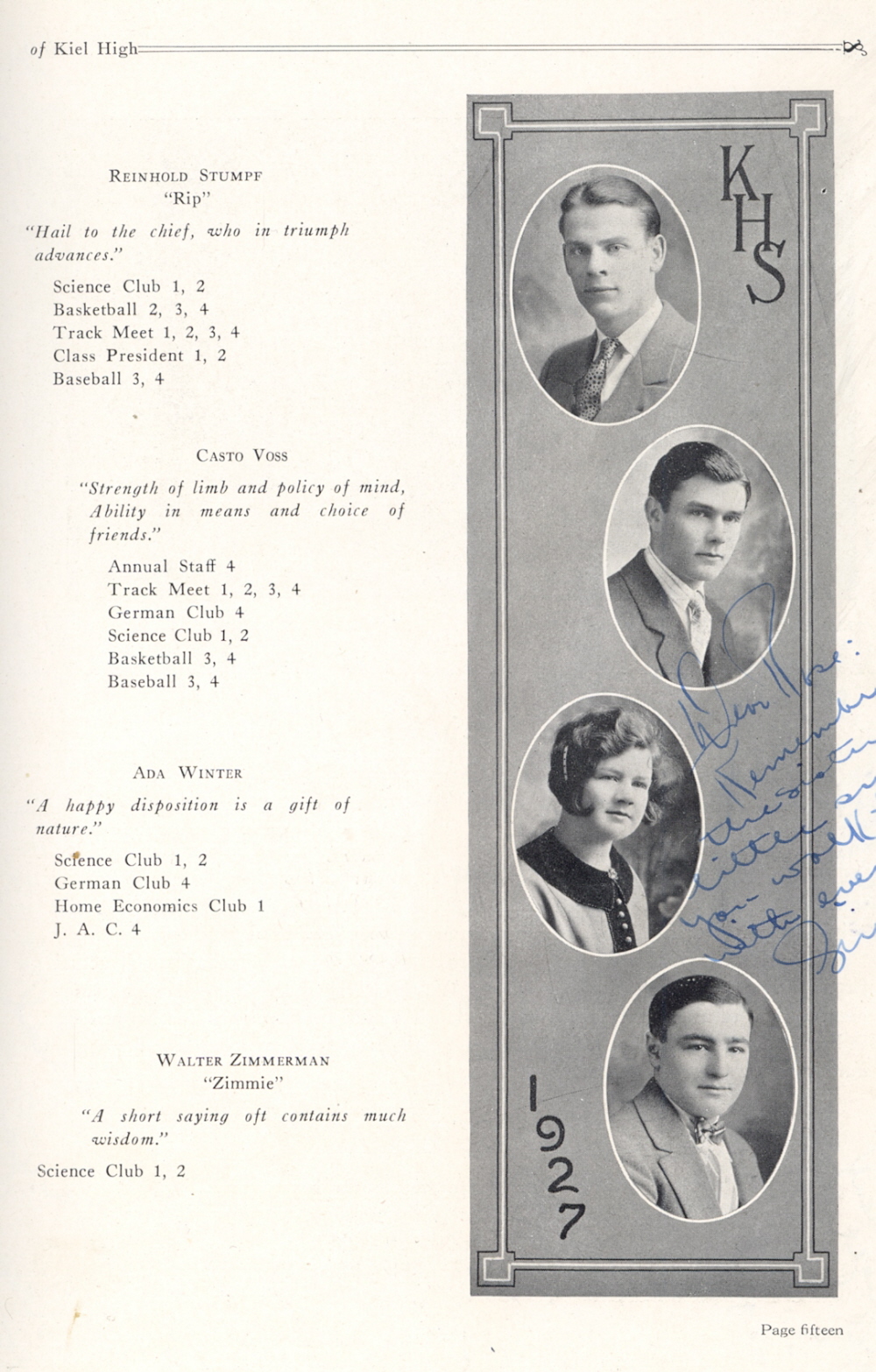1927 Kiel High School, Page 15: Reinhold Stumpf, Casto Voss, Ada Winters, Walter Zimmerman.