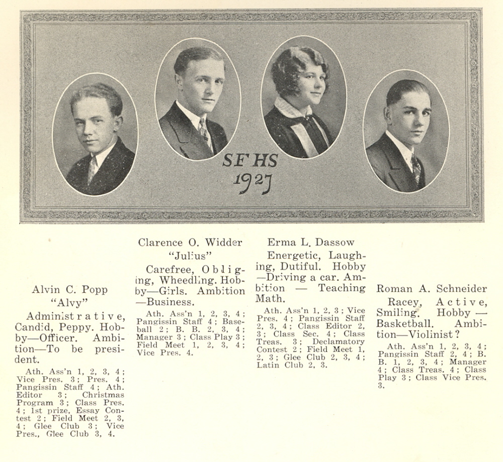 1927 Sheboygan Falls High School, Page 12: Alvin Popp, Clarence Widder, Erma Dassow, Roman Schneider.