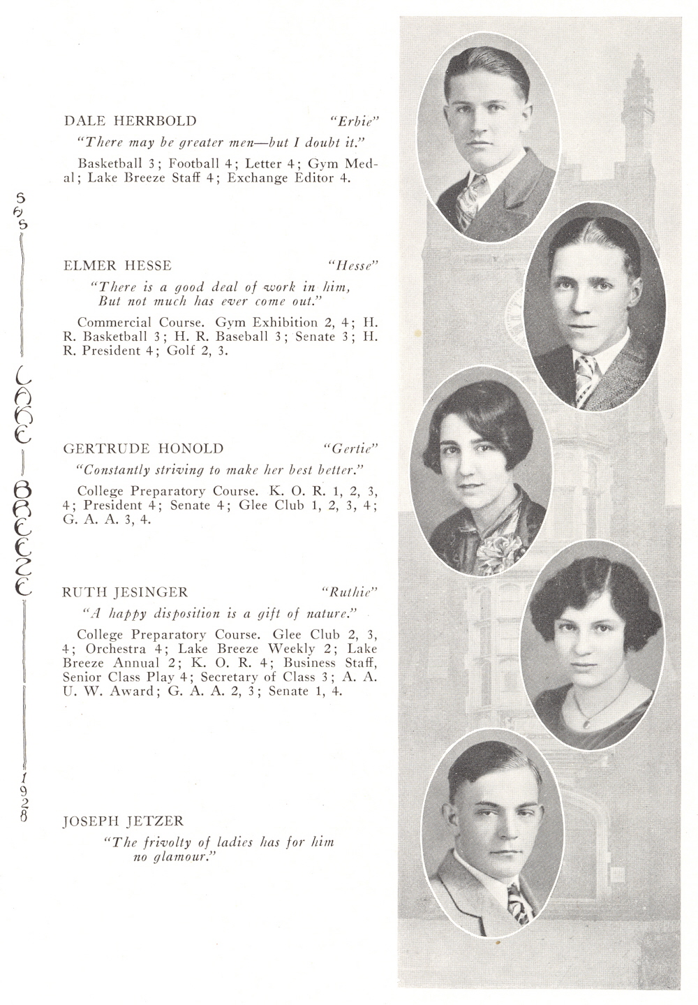 1928 Sheboygan High School, Page 21: Dale Herrbold, Elmer Hesse, Gertrude Honold, Ruth Jesinger, Joseph Jetzer.
