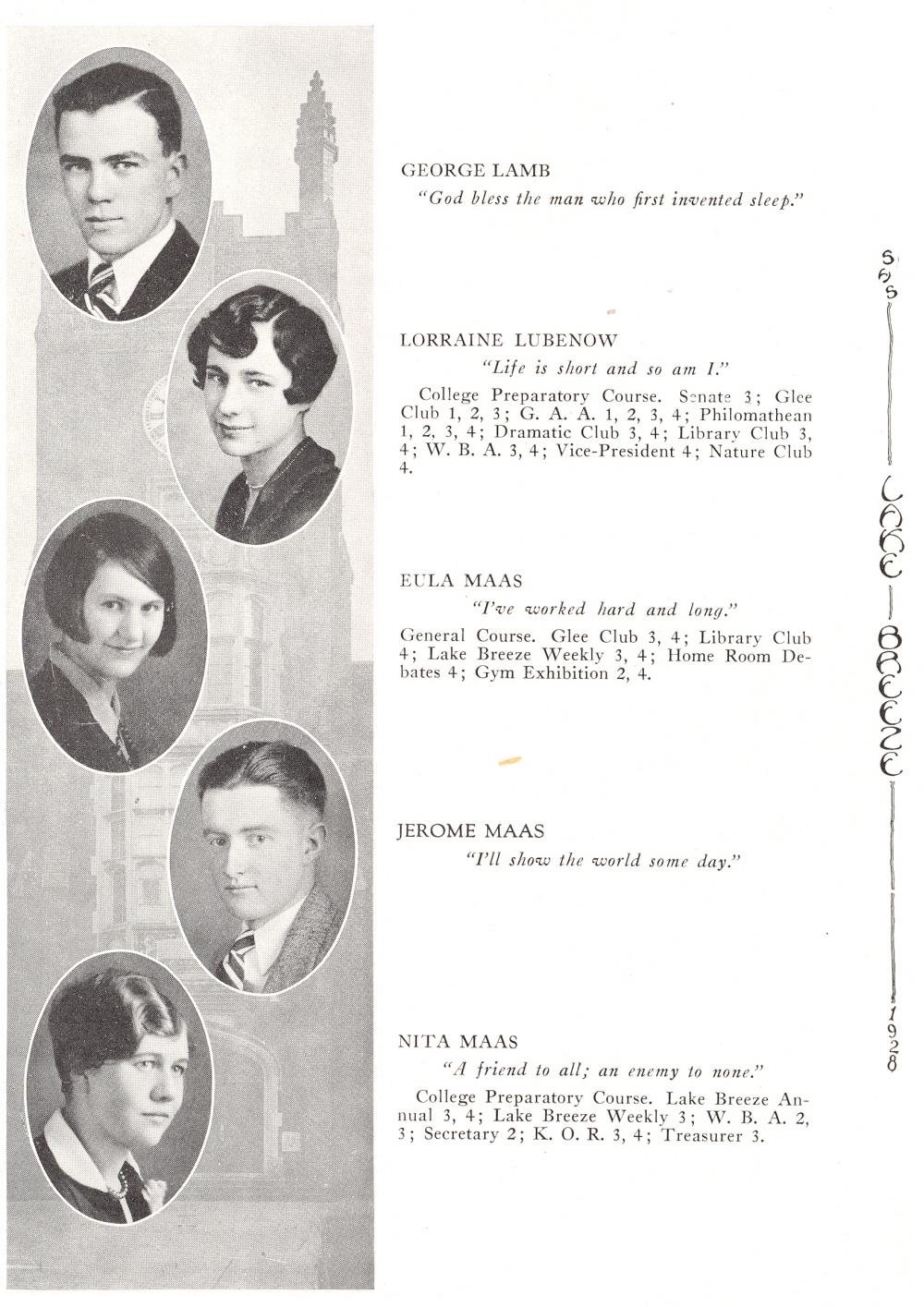 1928 Sheboygan High School, Page 24: George Lamb, Lorraine Lubenow, Eula Maas, Jerome Maas, Nita Maas.