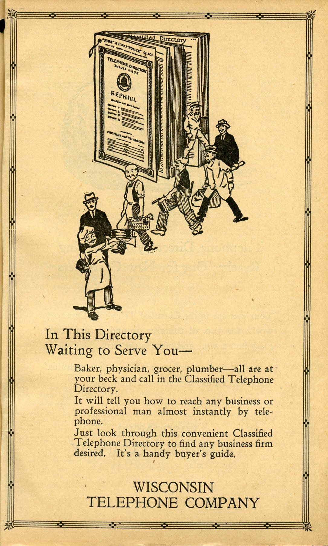 1928 Sheboygan Telephone Book, Page 123, Business Section: Wisconsin Telephone Company