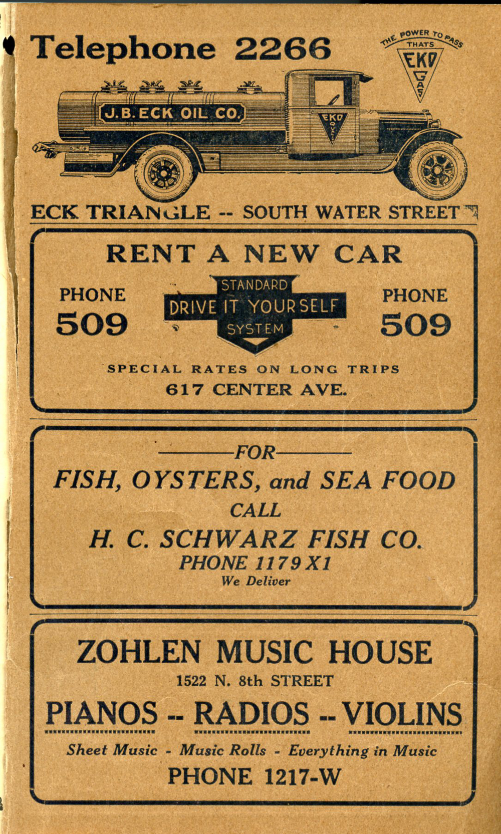 1928 Sheboygan Telephone Book, Page 125: Inside Back Cover