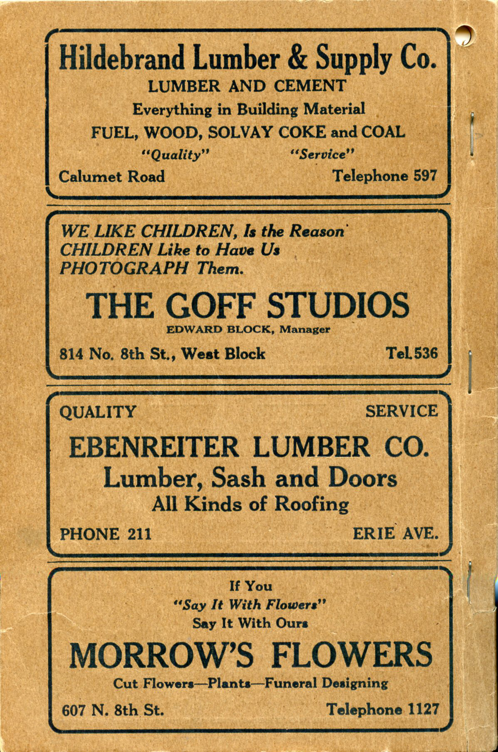 1928 Sheboygan Telephone Book, Page 126: Outside Back Cover