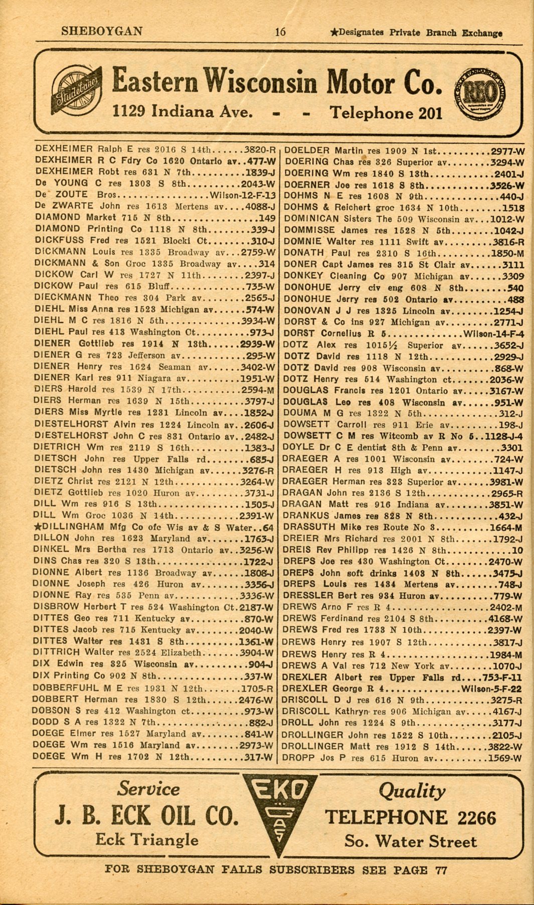 1928 Sheboygan Telephone Book, Page 16: Dexheimer to Dropp
