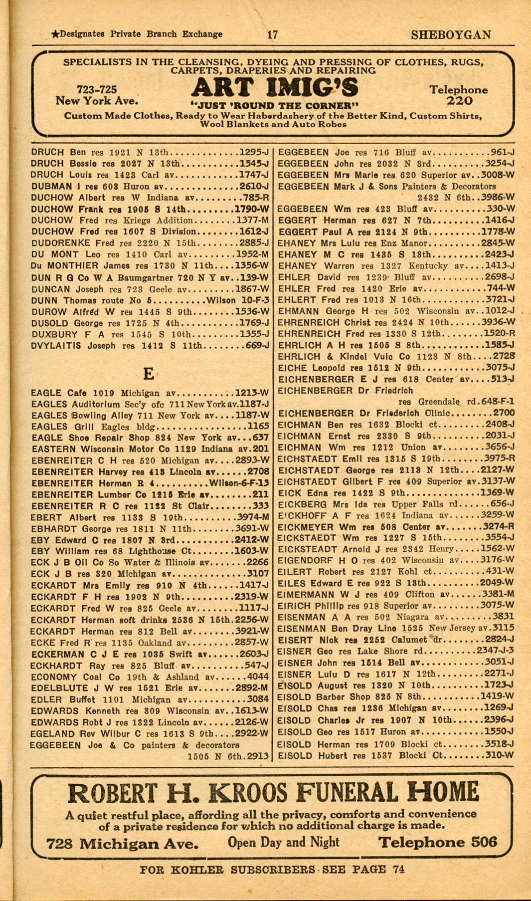 1928 Sheboygan Telephone Book, Page 17: Druch to Eisold