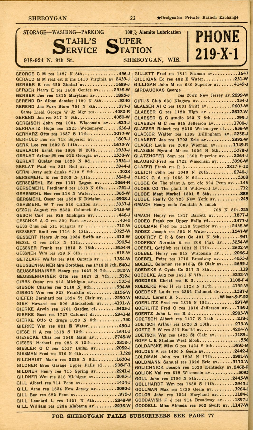 1928 Sheboygan Telephone Book, Page 22: George to Goodell