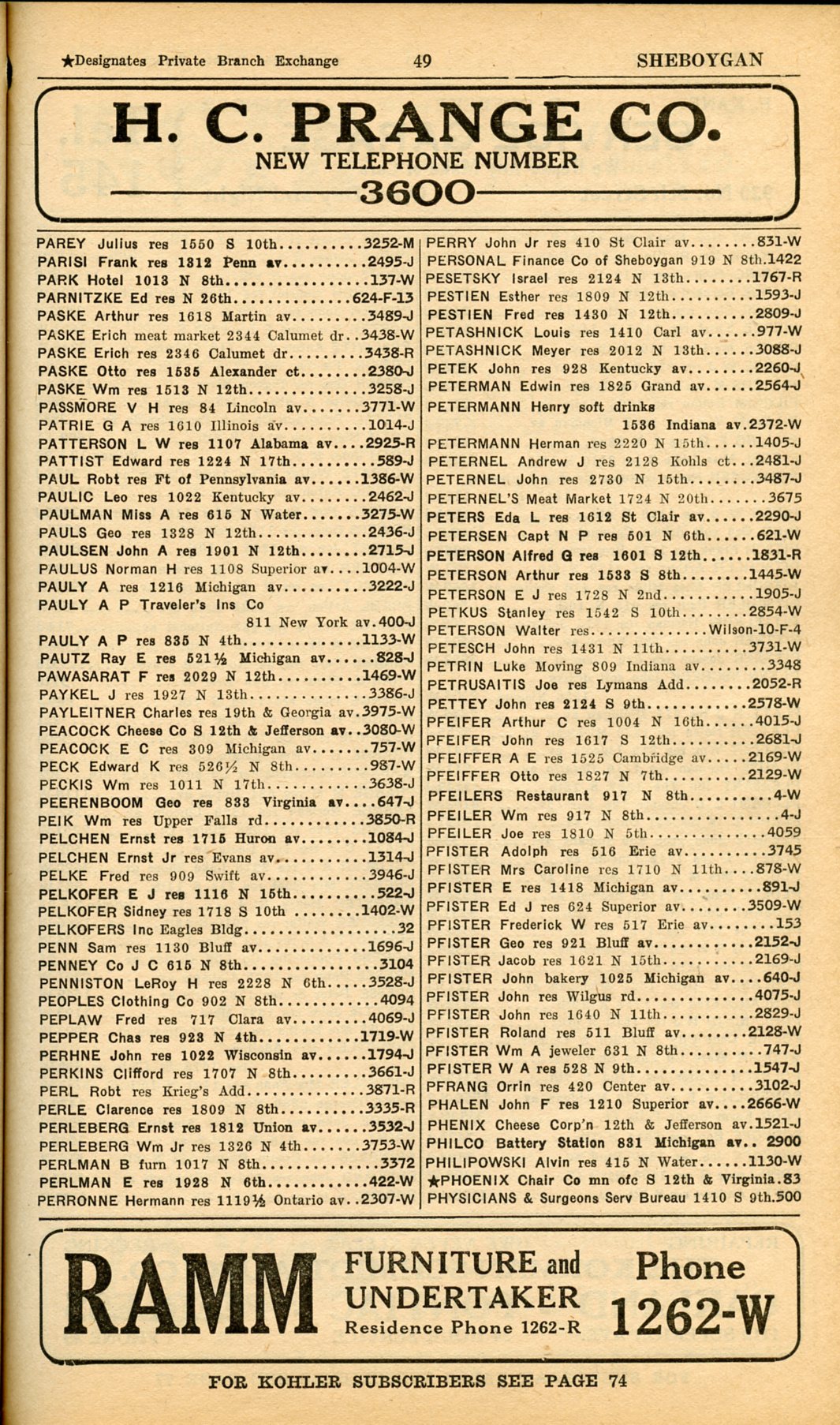 1928 Sheboygan Telephone Book, Page 49: Parey to Physicians