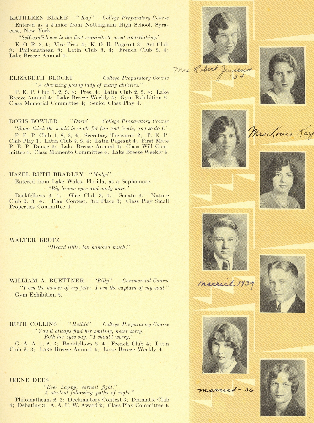 1930 Sheboygan High School, Page 10: Kathleen Blake, Elizabeth Blocki, Doris Bowler, Hazel Bradley, Walter Brotz, William Buettner, Ruth Collins, Irene Dees.