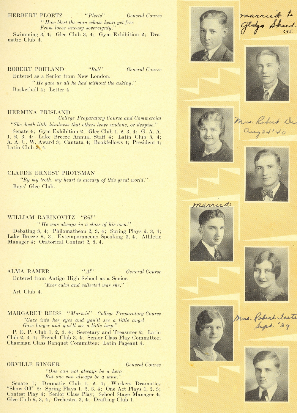 1930 Sheboygan High School, Page 18: Herbert Ploetz, Robert Pohland, Hermina Prisland, Claude Protsman, William Rabinovitz, Alma Ramer, Margaret Reiss, Orville Ringer.