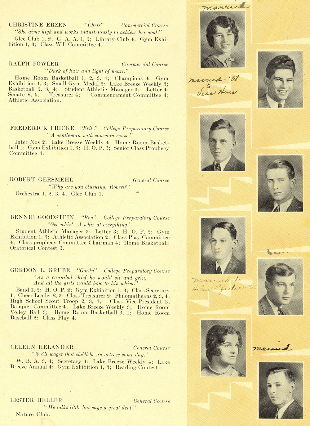 1930 Sheboygan High School, Page 2: Christine Erzen, Ralph Fowler, Frederick Fricke, Robert Gersmehl, Bennie Goodstein, Gordon Grube, Celeen Helander, Lester Heller.