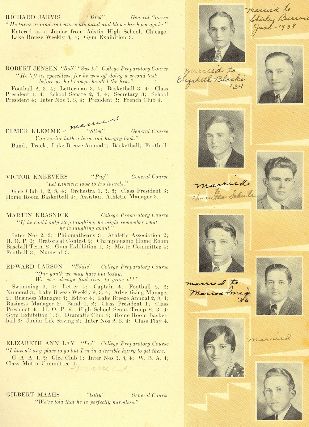 1930 Sheboygan High School, Page 4: Richard Jarvis, Robert Jensen, Elmer Klemme, Victor Kneevers, Martin Krasnick, Edward Larson, Elizabeth Lay, Gilbert Maahs.