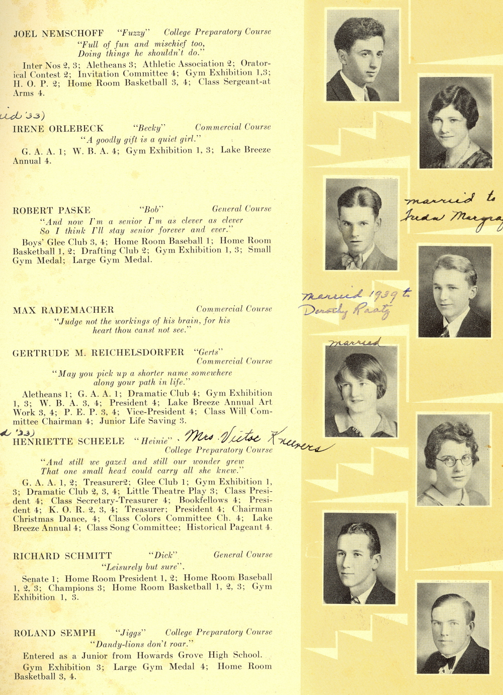1930 Sheboygan High School, Page 6: Joel Nemschoff, Irene Orlebeck, Robert Paske, Max Rademacher, Gertrude Reichelsdorfer, Henriette Scheele, Richard Schmitt, Roland Semph.
