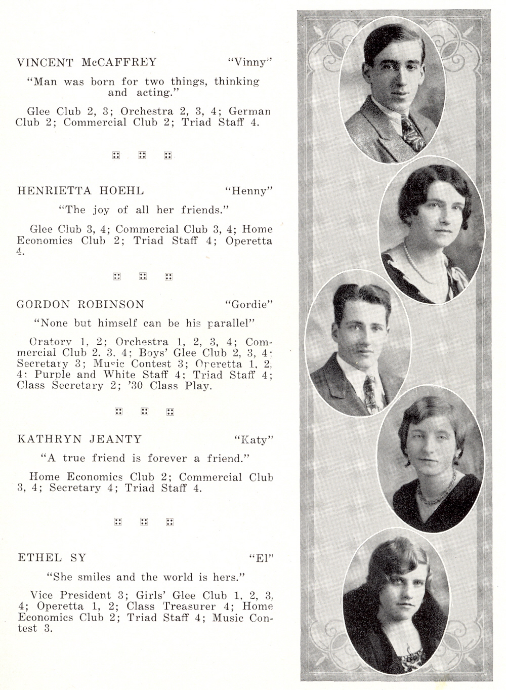 1931 Kiel High School, Page 11: Vincent McCaffrey, Henrietta Hoehl, Gordon Robinson, Kathryn Jeanty, Ethel Sy.