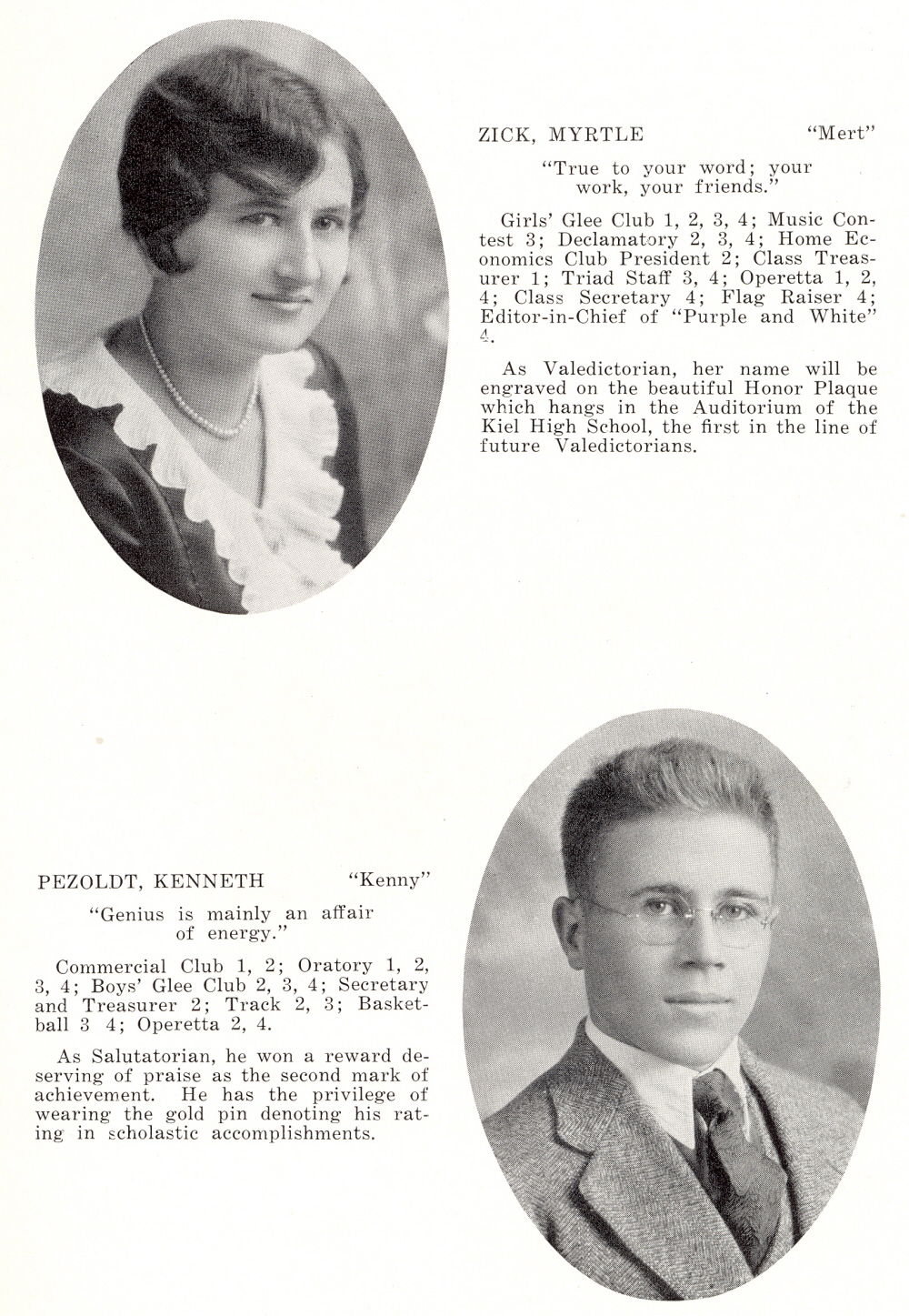 1931 Kiel High School, Page 7: Myrtle Zick, Kenneth Pezoldt.