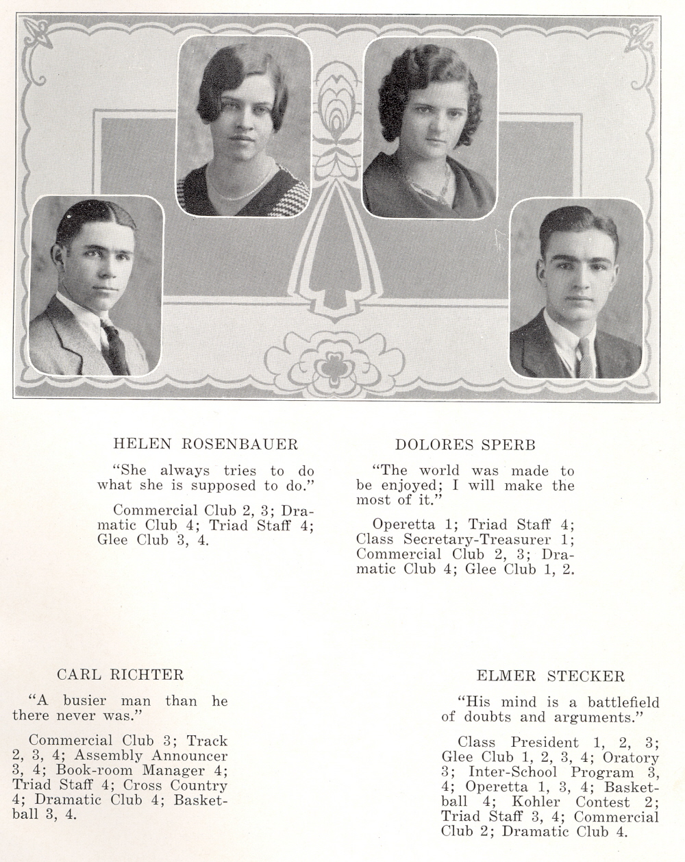 1932 Kiel High School, Page 13: Helen Rosenbauer, Dolores Sperb, Carl Richter, Elmer Stecker.