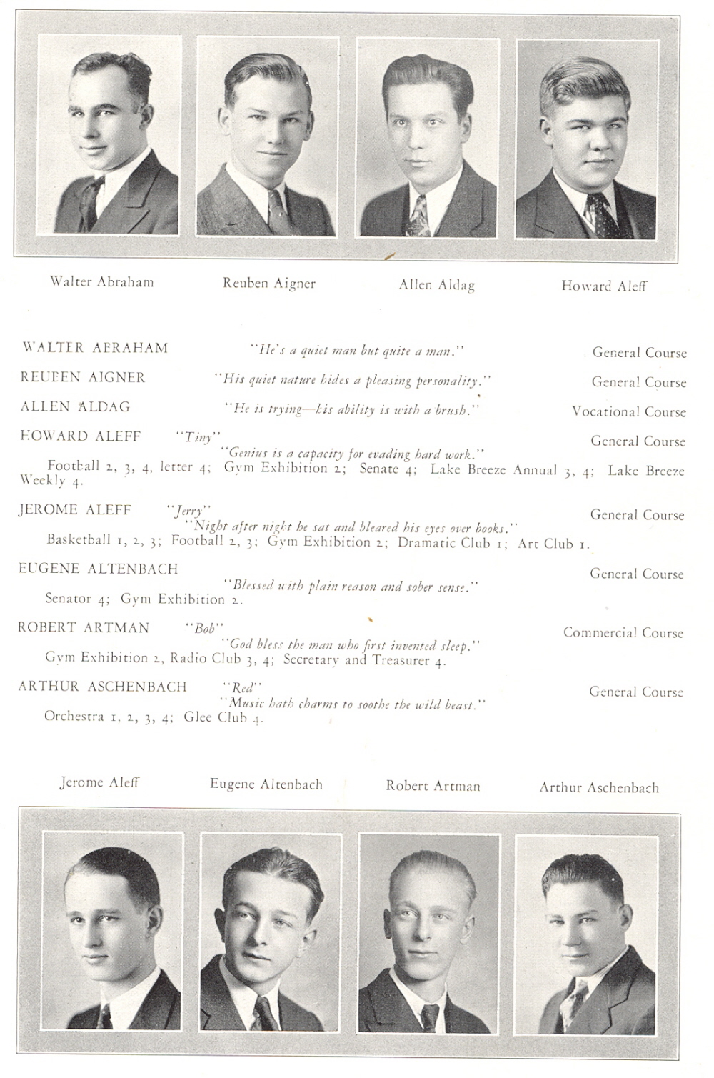 1932 Sheboygan High School, Page 38: Walter Abraham, Reuben Aigner, Allen Aldag, Howard Aleff, Jerome Aleff, Eugene Altenbach, Robert Artman, Arthur Aschenbach.