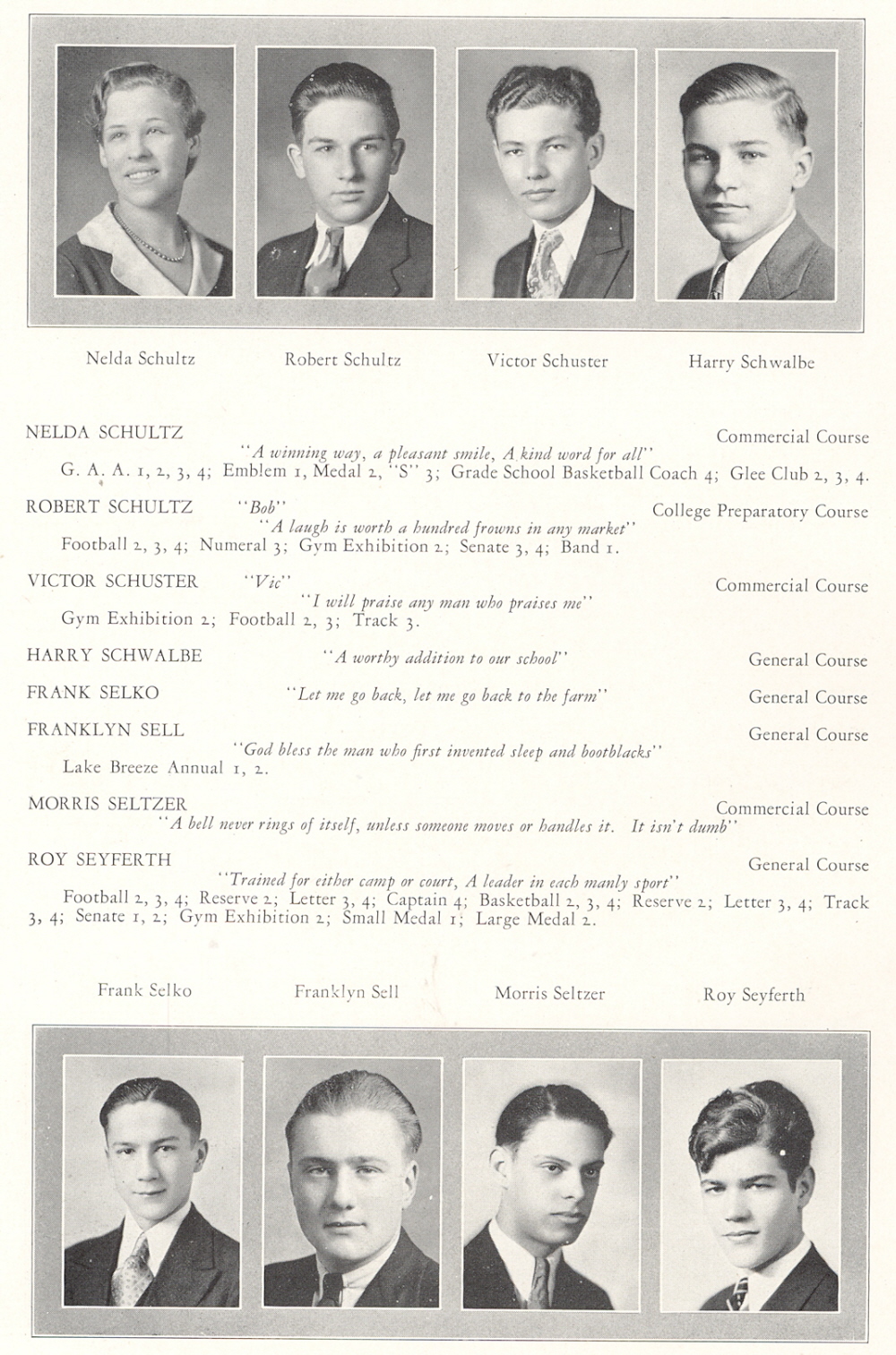 1932 Sheboygan High School, Page 68: Nelda Schultz, Robert Schultz, Victor Schuster, Harry Schwalbe, Frank Selko, Franklyn Sell, Morris Seltzer, Roy Seyferth.