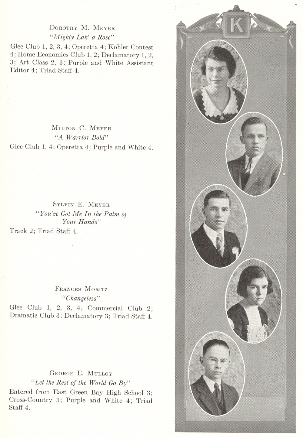 1933 Kiel High School, Page 15: Dorothy Meyer, Milton Meyer, Sylvin Meyer, Frances Moritz, George Mulloy.