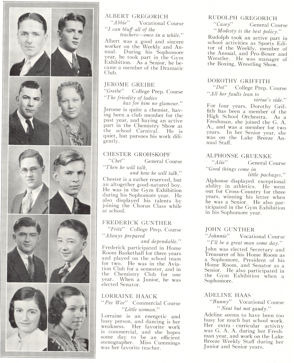 1934 Sheboygan High School, Page 26: Albert Gregorich, Rudolph Gregorich, Jerome Greibe, Dorothy Griffith, Chester Grohskopf, Alphonse Gruenke, Frederick Gunther, John Gunther, Lorraine Haack, Adeline Haas.
