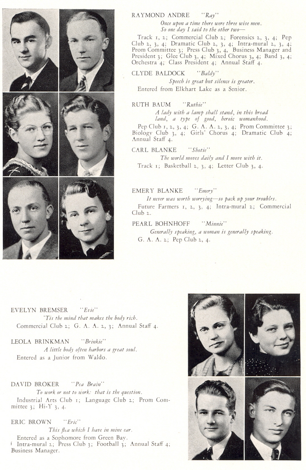 1936 Plymouth High School, Page 10: Raymond Andre, Clyde Baldock, Ruth Baum, Carl Blanke, Emery Blanke, Pearl Bohnhoff, Evelyn Bremser, Leola Brinkman, David Broker, Eric Brown.